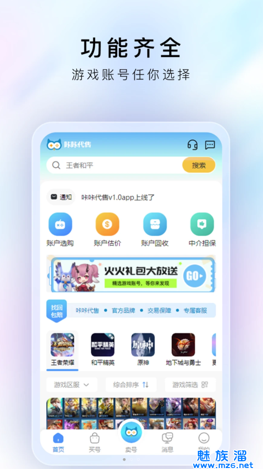 咔咔代售平台是一款更正规好用的游戏账号交易平台,在这款软件中可以体验更便捷流畅的账号代售服务,各种丰富多样化的游戏账号资源任你选择,用最低的价格即可交易成功。在咔咔代售最新正版中所有的热门游戏账号资源随意畅玩,随时上线随时了解整体的交易流程哦!