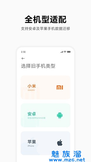 小米换机app是一款小米旗下的文件互换工具app,有了这款软件可以轻松适配小米各个机型以及某些品牌,整体的操作简单易上手,一站式将旧设备中的重要信息、视频图文、文档资源等迁移到新手机中,转移数据内容安全又快捷。在小米换机app最新版中无需数据线即可实现传输,有需要的用户快下载尝试一番。