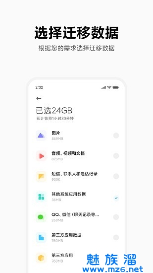小米换机在数据传输前,需要一定存储空间来打包备份数据,建议您参考弹窗上的所需空间大小提示进行清理。