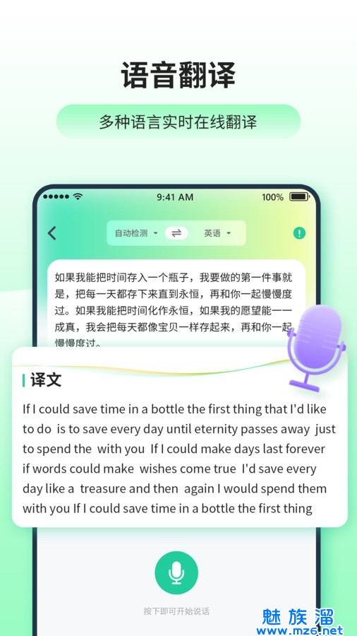 3、语音输入,轻轻一说,就能语音转文字再翻译,方便又高效。