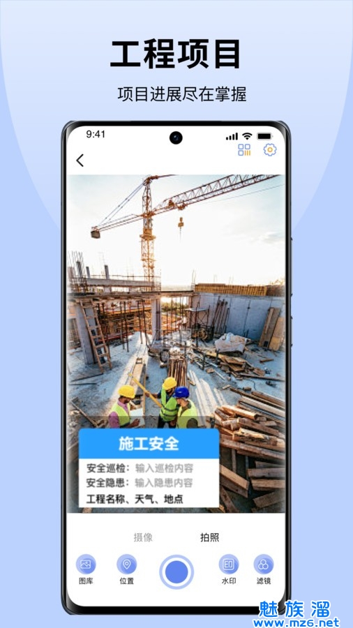 4、工程项目,进展实时掌握,随时随地在线通过相机拍摄记录!