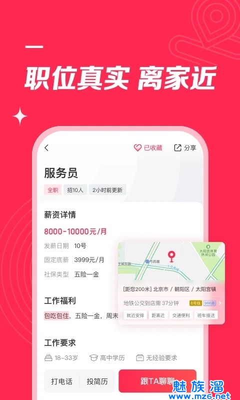 【职位真,离家近】严格的职位审核机制保证职位更真实,基于定位推荐附近的职位