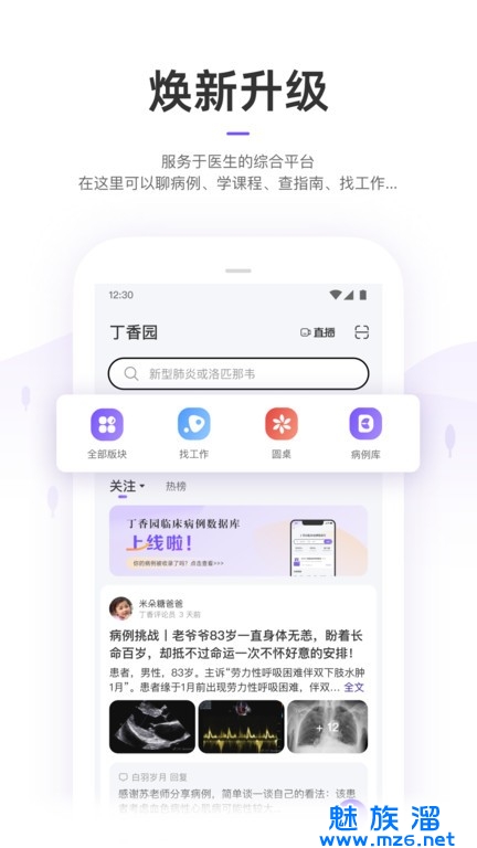 丁香园官方版是一款专业好用的健康医疗手机平台,在这款软件中整合了更全面的病例知识,各种各样的临床经验、治病案例、医疗资讯详情等内容一手掌握,随时上线随时掌握更详细精准的医学知识。在丁香园app最新官方版中还能与专业人员共同讨论医疗话题,实时在线分享治疗的经验,有需要的用户快试试吧。