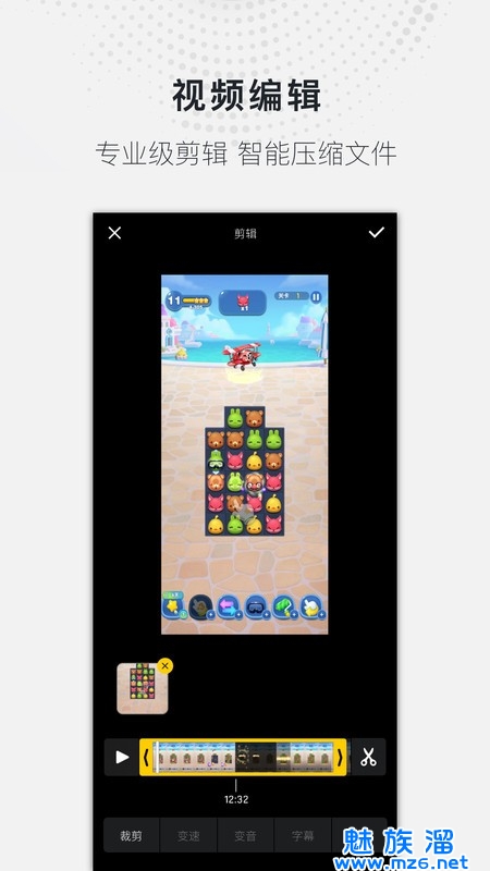 4、录制视频裁剪、视频拼接、自定义视频、视频录音、视频变速和视频旋转。
