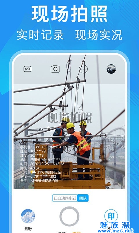 现场水印:经纬度、地点、时间、海拔、天气、位置名称编码、个人签名、手机号、IMEI等水印;