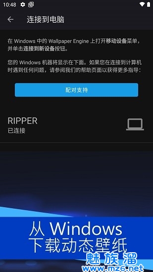 2、将场景和视频类型的壁纸从您计算机上的 Wallpaper Engine 无线传输到 Android。