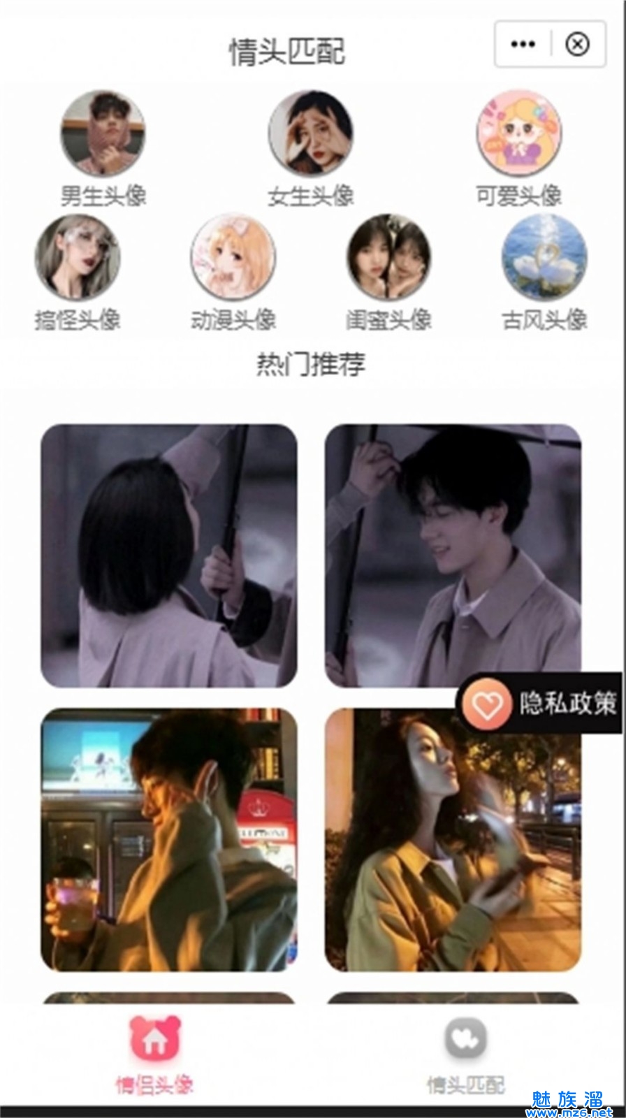 情头匹配app是一款专注于情侣头像搜索的手机软件,有了这款软件轻松找到满意的情头壁纸,各种精美高清的头像壁纸资源实时上新,并且还能根据一张头像图片智能匹配另一半的情头资源。在情头匹配最新版本中还能任意创建更加个性化的头像资源,有需要的用户快试试吧。