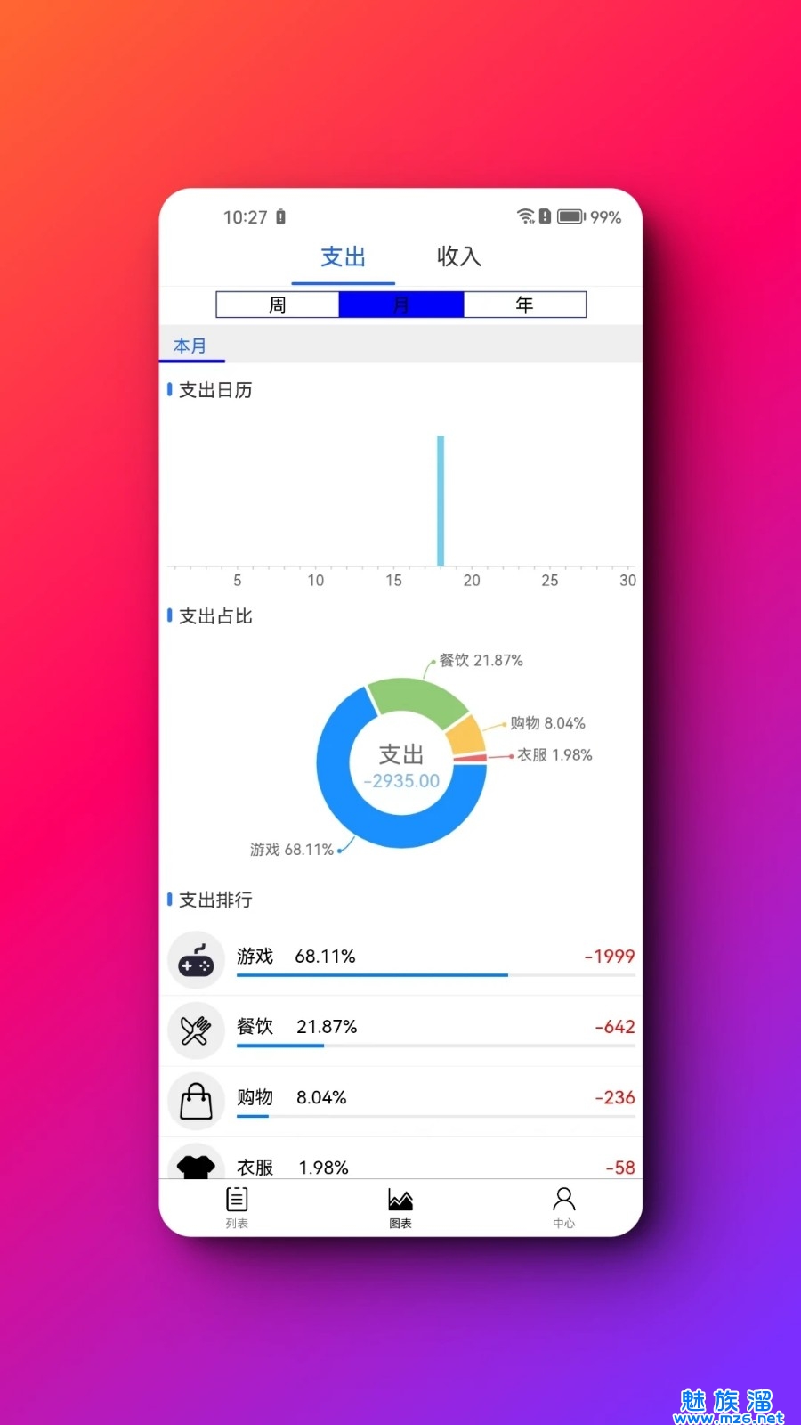 4、多样的统计分析图表,帮助用户了解自己的消费习惯。