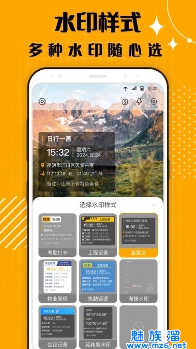 蜜蜂水印相机软件是一款十分好用的手机拍摄软件,自定义拍出所需要的水印图像资源,各种各样的水印素材和样式任意设置,分分钟得到相应的照片。在蜜蜂水印相机手机版中适用于各个场景,自由在线记录工作进度、考勤打卡、工程进程等,整体的操作简单易上手,水印拍摄更便捷哦!