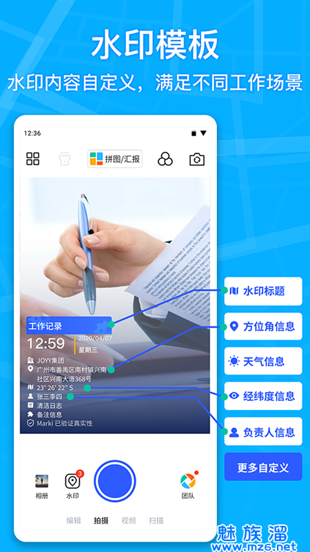 旅行拍照,宝宝记录,食物拍照留念等,拥有马克水印相机,你等于拥有了宝宝记录水印相机,美食水印相机,旅行水印相机。拍照打卡,一键搞定。