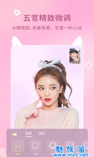 微美颜是一款支持视频聊天的实时美颜APP。实时脸部追踪,贴合人脸,超准跟随,素颜也能在微信视频通话时媲美网红脸,让你的聊天灵动十足。APP功能齐全:精细磨皮、精致廋脸、美肤美白。让女生们从此告别微信“丑”聊,让自己漂漂亮亮自信起来。