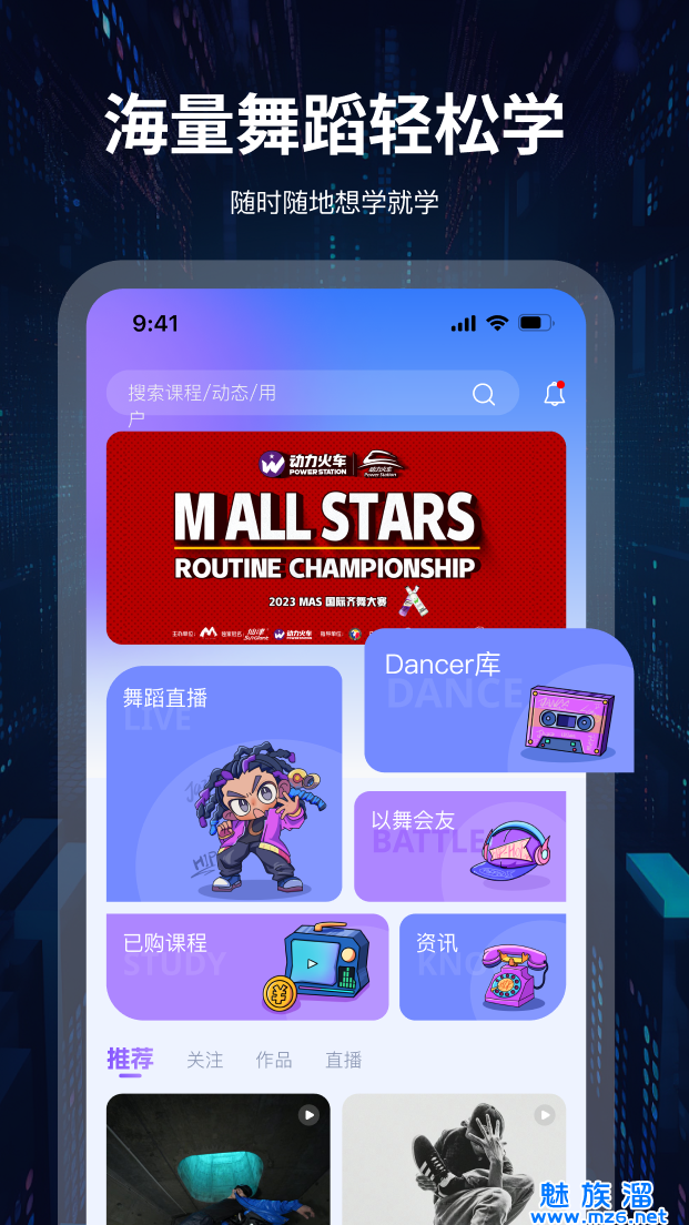 6、精彩舞蹈视频随时刷,打造你的潮流舞者圈,求职赛事活动一网打尽。