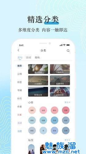 3、在分类中,用户可以根据自己的喜好来观赏软件中的精选句子;