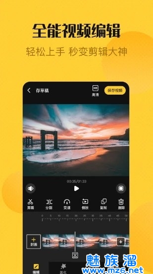 视频剪辑编辑: 一键去水印,高精准度剪辑,自由分割,精准到0.04秒。