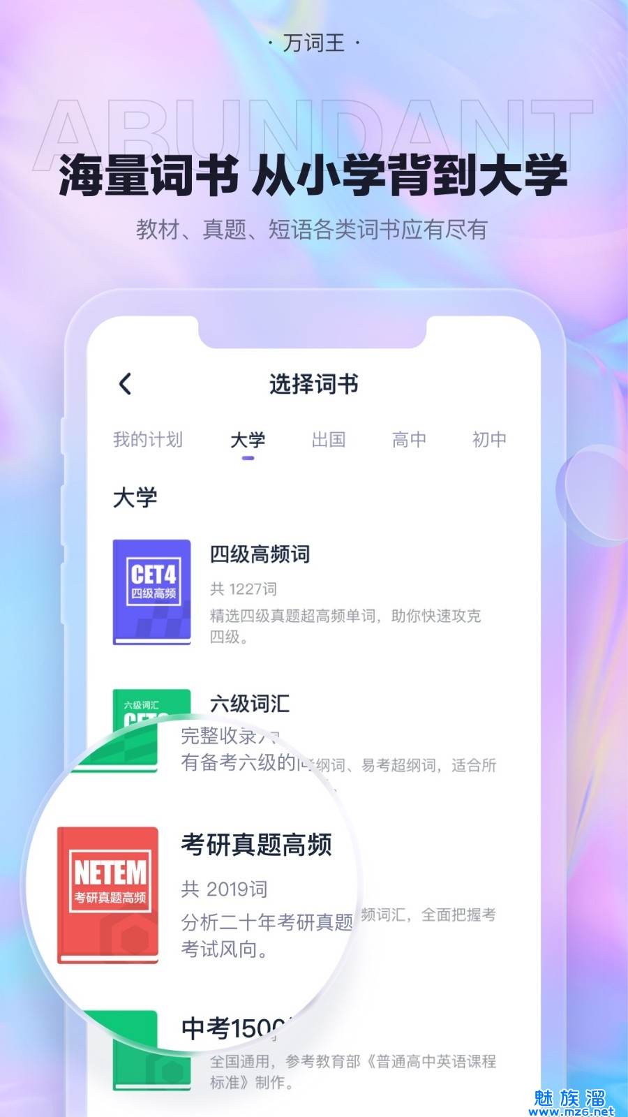 1、万词王这里更新的单词词库也是非常多的,能满足多种不同的年级的学生去学单词;