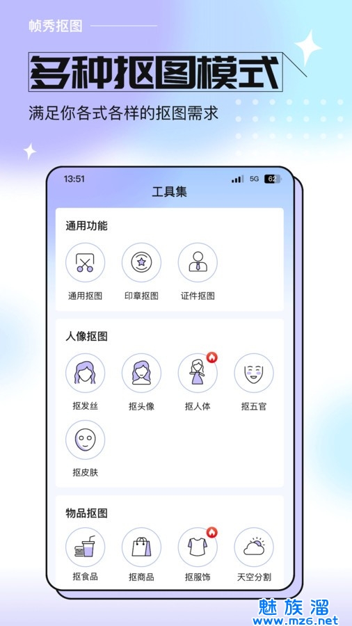 4、享受更全面的管理服务,您可以随时了解到不同形象的抠图功能在其中。