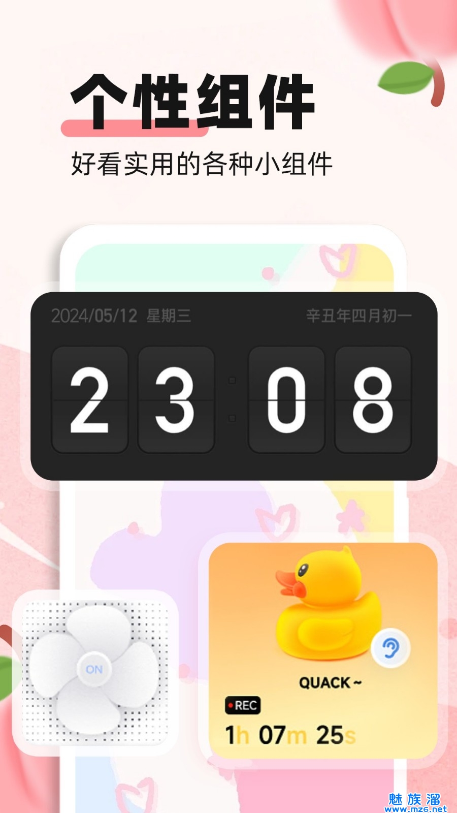 2、主题壁纸,每日精选套图,一键设置,自动匹配屏幕;全站搜索,网罗美化资源。