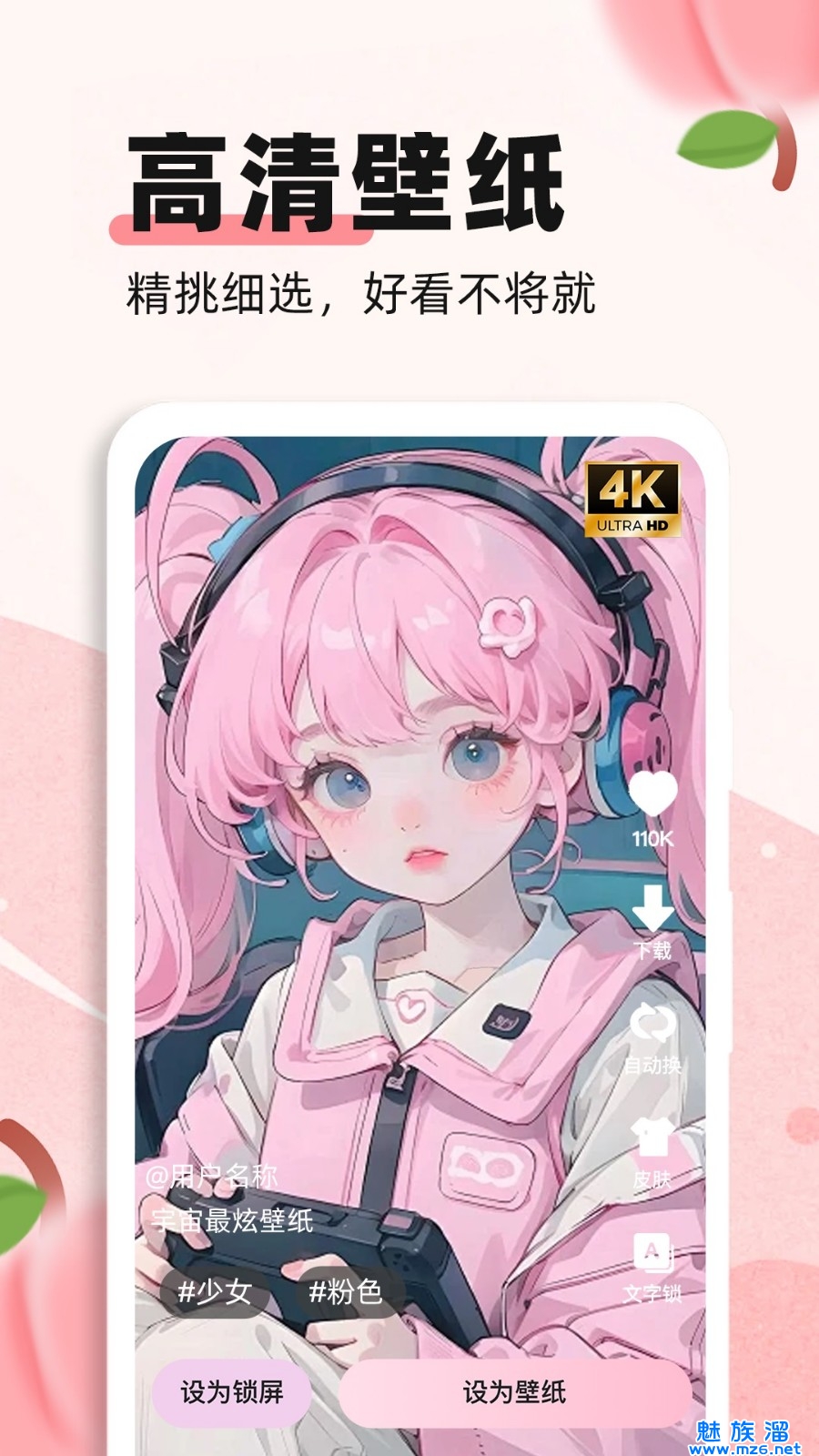 蜜桃主题壁纸app是一款专注于壁纸更换的手机软件,海量精美流行的主题壁纸资源应有尽有,在这里收录了大量时尚唯美的动态视频作品以及各种静态美图资源,随时上线随时搜索喜欢的壁纸风格。在蜜桃主题壁纸高清免费版中不需要付费即可下载设置专属的主题桌面,更换壁纸屏幕更好用哦!