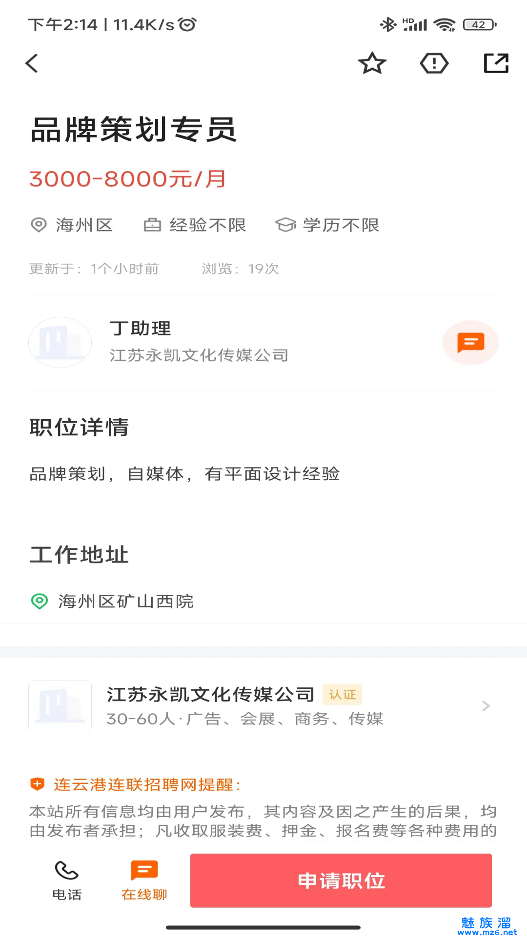 5、企业回复速度非常快,你还能和HR在线交流,咨询相关信息。