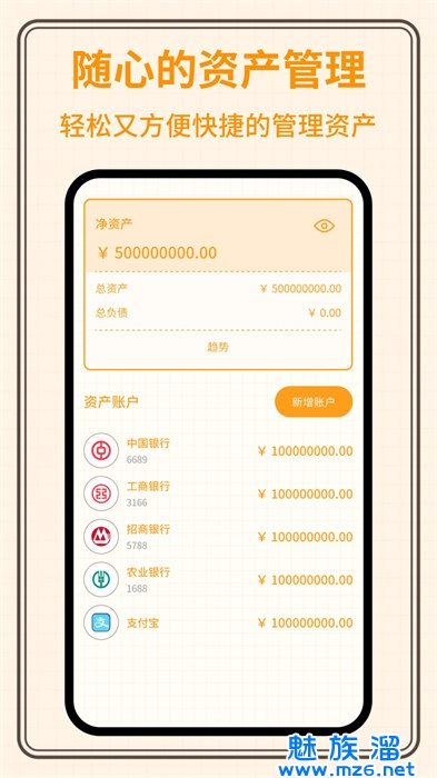 4、现金、储蓄卡、工资卡、信用卡和基金都可以轻松管理,详细的记录账单。