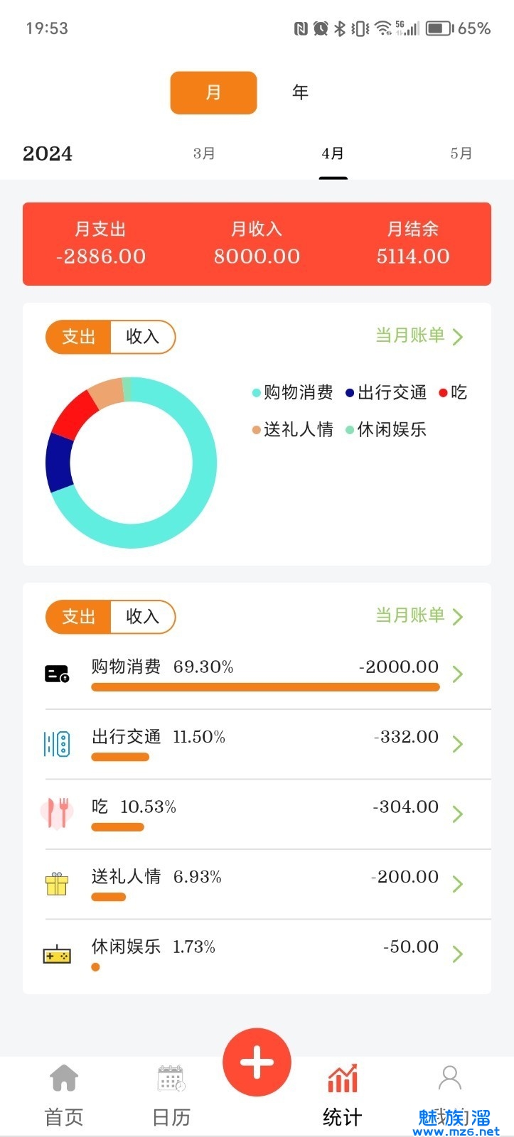 4、可以记录自己生活中用的开销,每一笔都有明确的记录。