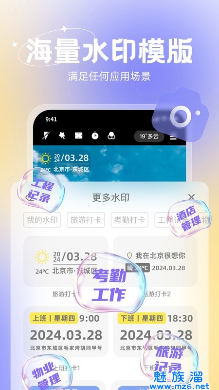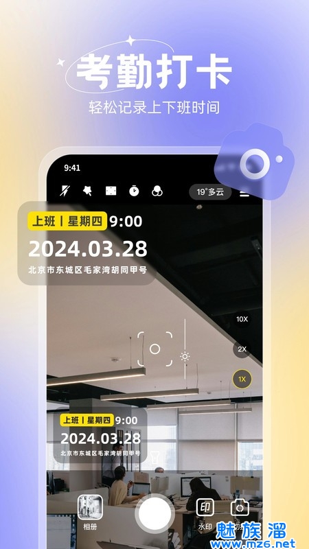 5、更方便的签到模式,地点、时间都能以水印方式呈现在照片上。