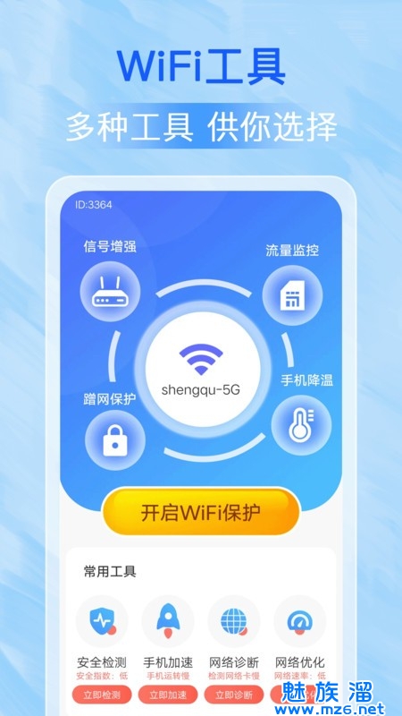 2、支持用户随时查看自己家的wifi,以防有人蹭网,上网更迅速;