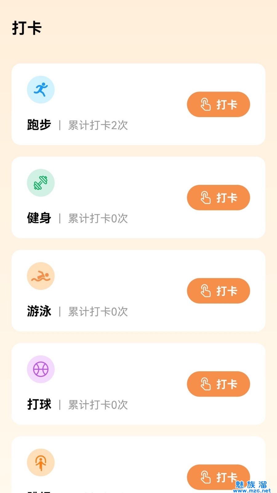4、按照我们的运动目标每天打卡,更好的坚持下去。