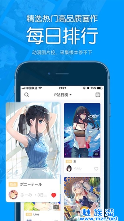 4、精选热门高品质画作每日排行,动漫图片控,采集根本停不下。