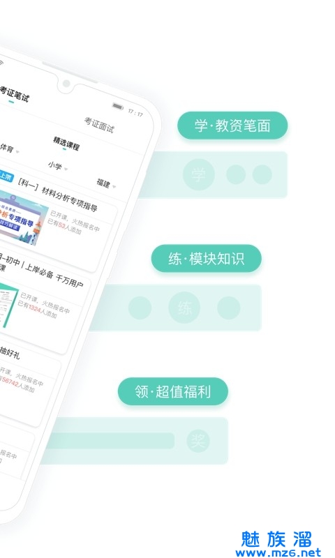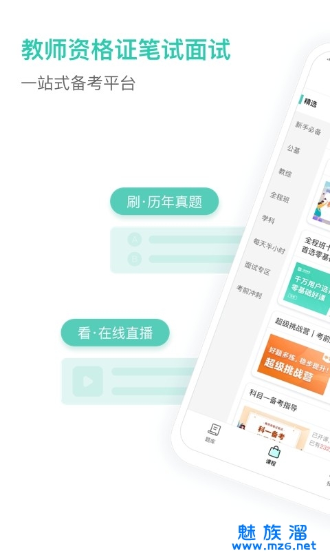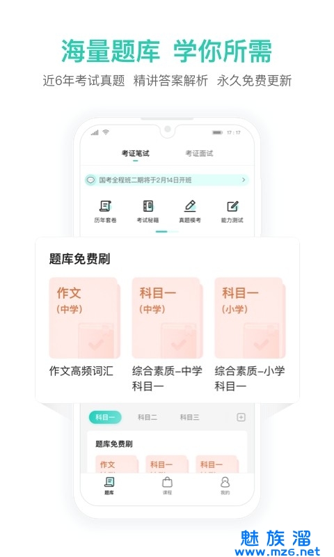 2、集备考资讯、免费公开课、移动商城等功能于一体。