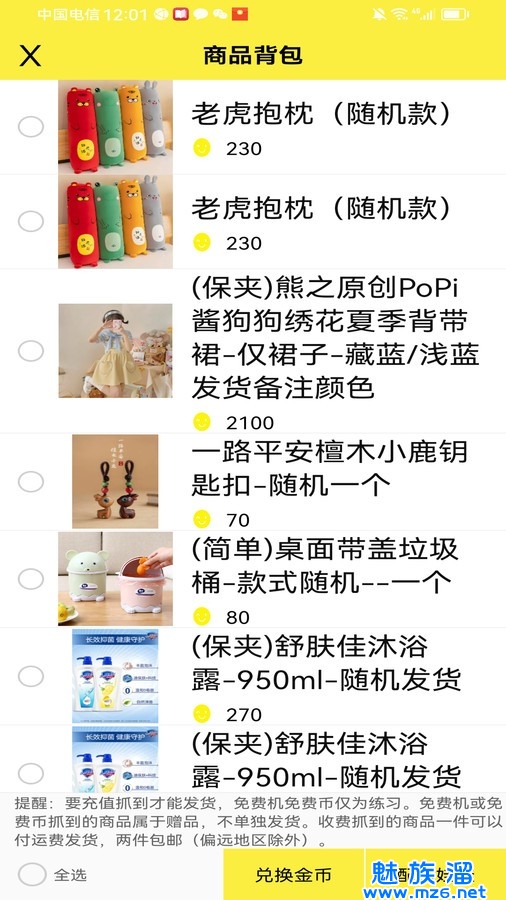 6、游戏奖品每日更新,抓取成功奖品包邮到家,让你足不出户就能抓娃娃。