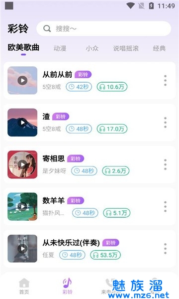 3、众多不同类型不同风格的铃声作品免费为用户提供;