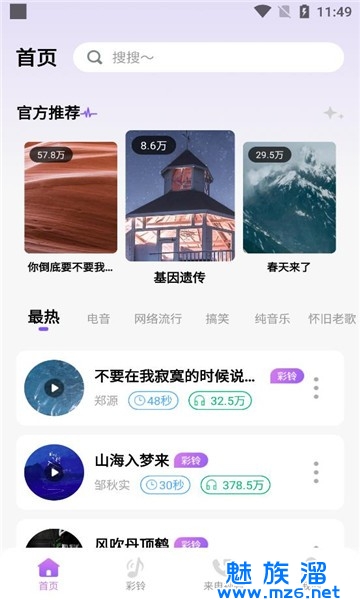 1、自由下载喜欢的铃声资源,打造更加个性化的来电铃声;