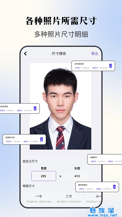 1、能够拍出想要的证件照,自由在线调整尺寸和大小;