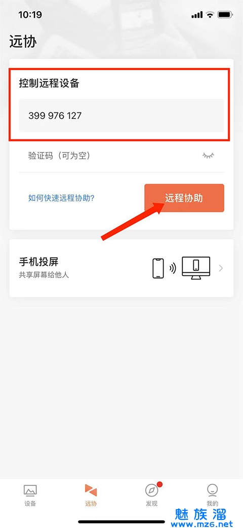打开向日葵远程控制苹果手机版,在【远协】界面,输入伙伴识别码后选择【远程协助】选项,