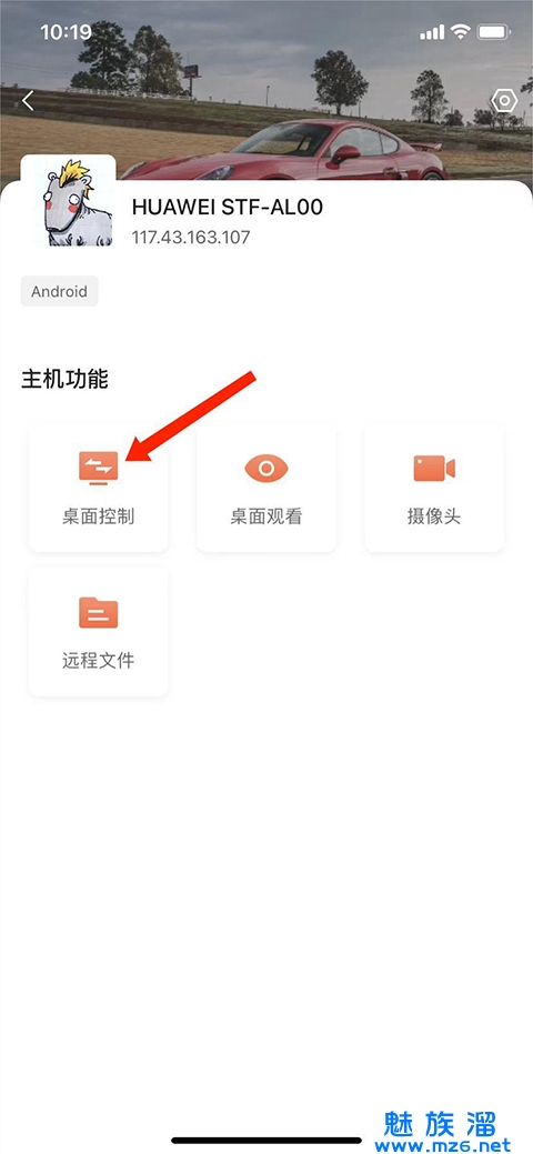 进入功能选择界面,包括桌面控制、桌面观看、摄像头和远程文件等功能,选择【桌面控制】选项,