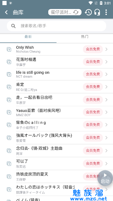 2.在搜索框里输入歌曲名称来找到歌曲,点击【启动】就能播放了;