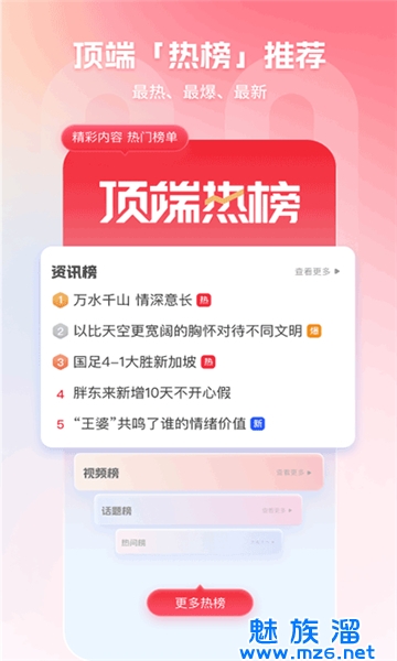 顶端新闻app是一款专门用来看新闻的手机软件,用户们在这里可以看到各种类型的新闻,而且都是最新的资讯哦,每天都会实时更新不同的内容,不仅仅有文字类型,还有各种短视频相关,大家可以随时查看多个板块,还有热门榜单,有了这款软件让你的生活多了一点乐趣。