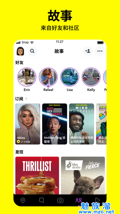 • 按照你的喜好查看 Snapchat 社区的故事。