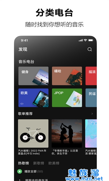 学习/运动/打游戏/通勤途中时想听歌?想听嘻哈/摇滚/电音/R&B?分类电台帮你随时随地,快速找到适合的音乐。