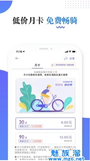2、只需轻轻一扫,即可骑车,每次租车首小时不要钱