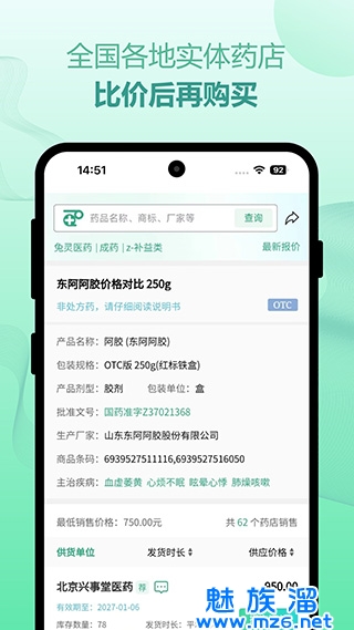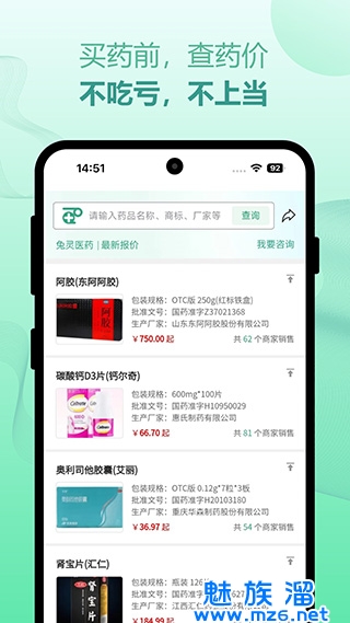 1、药价查询:在搜索框中输入药品名称那么可以查询药品实时市场价格;
