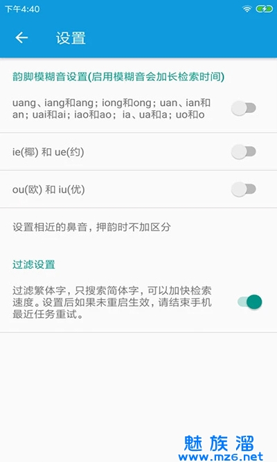4.支持简繁切换、支持模糊音搜索,如相近的鼻音、韵母。