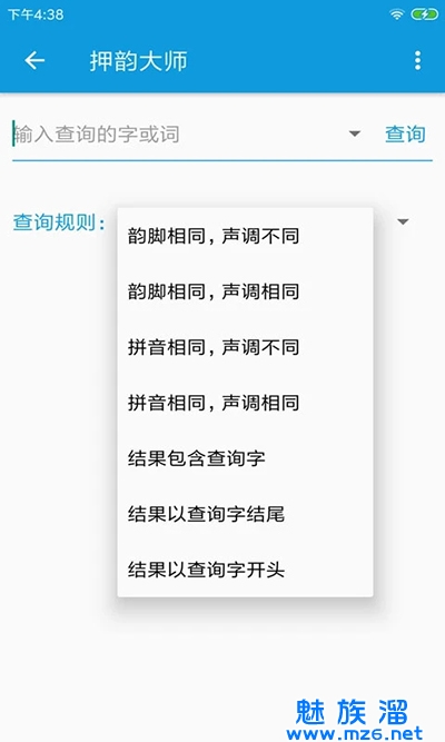 3、返回主页,点击查询规则的下拉可切换不同的韵脚分类。