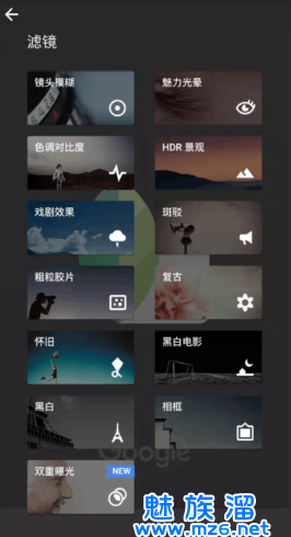 打开图片后,点按“工具”访问“工具”和“滤镜”即可添加修改效果。工具有助于完善图片,从剪裁和拉直到移除污点和刮痕,不一而足。其中的滤镜可用来添加不同的风格效果。