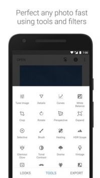 • 29 种工具和滤镜,包括修复、画笔、结构、HDR 和透视等功能(见下面的列表)