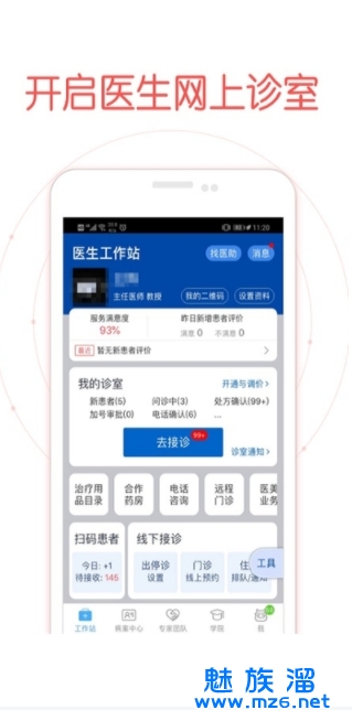2、开启医生网上诊室,在医生工作站的页面中我们可以查看不同的信息;