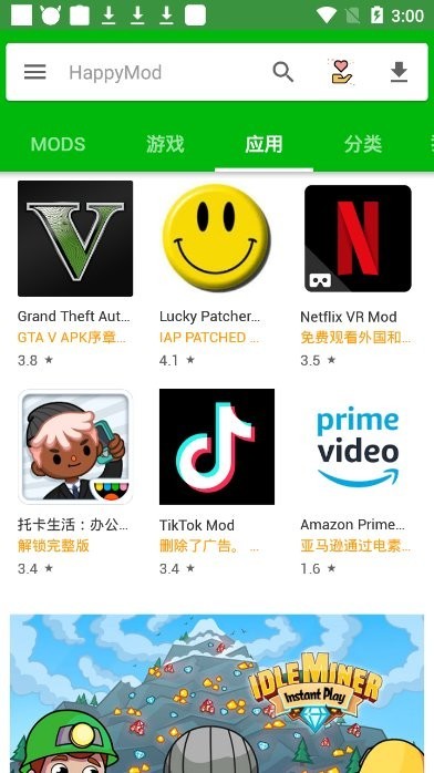 1、现在HappyMod来了,它是一个为我们提供数千款安卓游戏和应用程序的改进apk的工具。