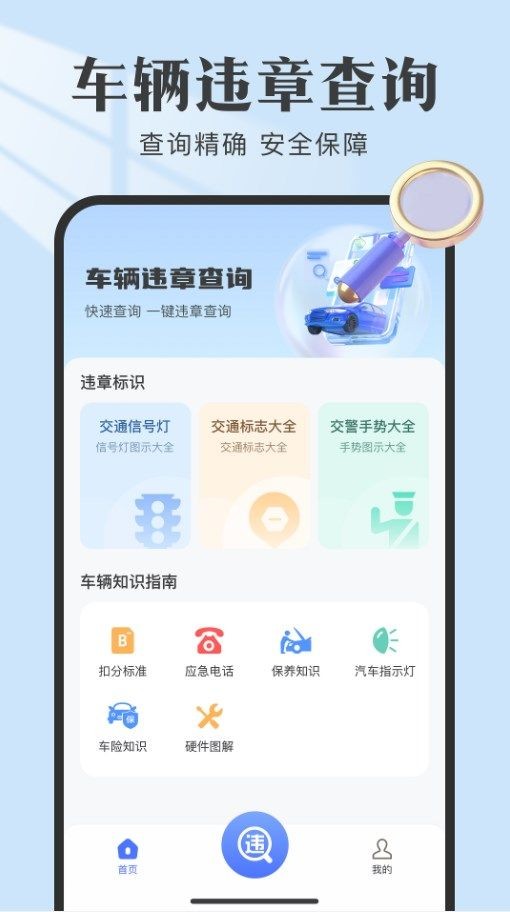 违章查查一款操作非常方便轻松的线上查询软件,在这里面是能帮助你轻松查询汽车是否有违章的情况,一键轻松查询并且软件内还有许多特色功能等你使用,能帮助你更好的了解交通规则,避免出现不熟系的情况,还能帮助你解决各种问题,让你开车变的更加的安心、省心!