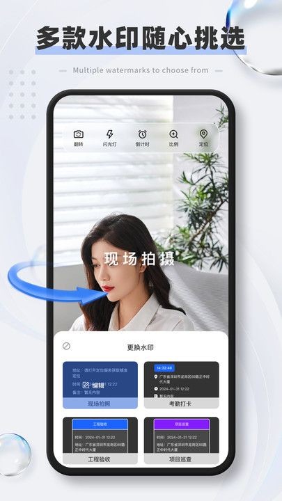 2、每次进行拍摄自动添加水印,水印还可以随意去编辑的。